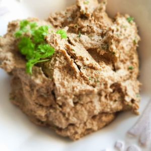 Suszone grzyby zalej gorącą wodą i odstaw do namoczenia na min. 30 minut. Z nasionami postąp tak samo. Na patelni rozgrzej margarynę i oliwę chili, i dorzuć pokrojone w plastry pieczarki. Smaż ok. 10 minut mieszając jak najrzadziej. Następnie dodaj posiekany seler, cebulę i namoczone grzyby (wodę zachowaj). Zmniejsz ogień i chwilę smaż. Następnie dodaj łyżkę sosu sojowego i 5 łyżek wody z grzybów. Po kolejnych 10 minutach smażenia wrzuć do miksera razem z odsączonym słonecznikiem, 100 ml mleka, 2 łyżkami sosu sojowego, połową łyżeczki pasty tamarin i pieprzem. Zmiksuj. Dodaj 3 łyżki bułki tartej, łyżkę oliwy truflowej, łyżkę płatków drożdżowych oraz natkę pietruszki. Wymieszaj ponownie.