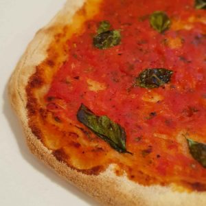 Pół godziny wcześniej nagrzej piekarnik do maksymalnej temperatury (góra/dół). Jeśli nie masz kamienia do pizzy, możesz użyć odwróconej blachy z piekarnika. Umieść ją na samym spodzie. Kratkę natomiast umieść na poziomie drugim od góry.
