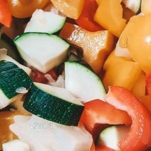 Na oliwie podsmaż posiekaną w kostkę cebulę i czosnek (przez ok. 2-3 min). Następnie dorzuć pokrojone w kostkę warzywa. Po 2 min. dodaj koncentrat pomidorowy, oregano oraz wlej bulion. Całość gotuj pod przykryciem mieszając od czasu do czasu, aż warzywa będą miękkie (ok. 20 minut). Dopraw do smaku solą i pieprzem.